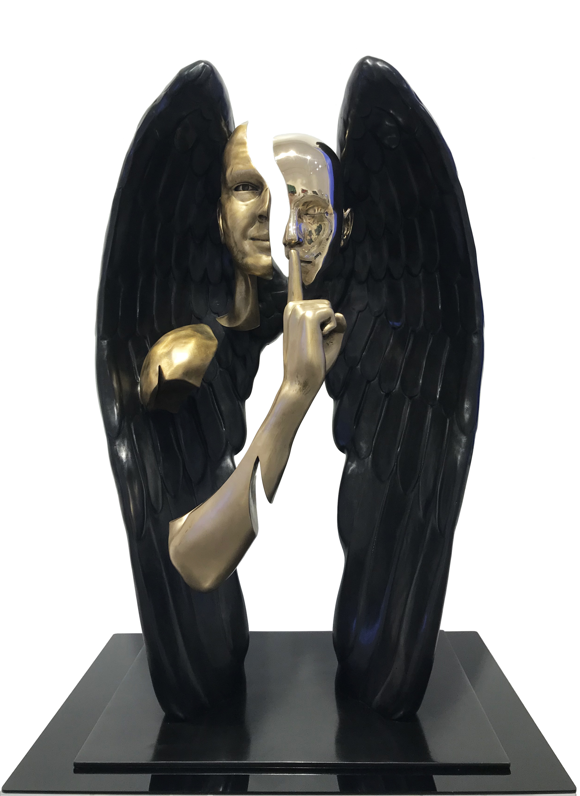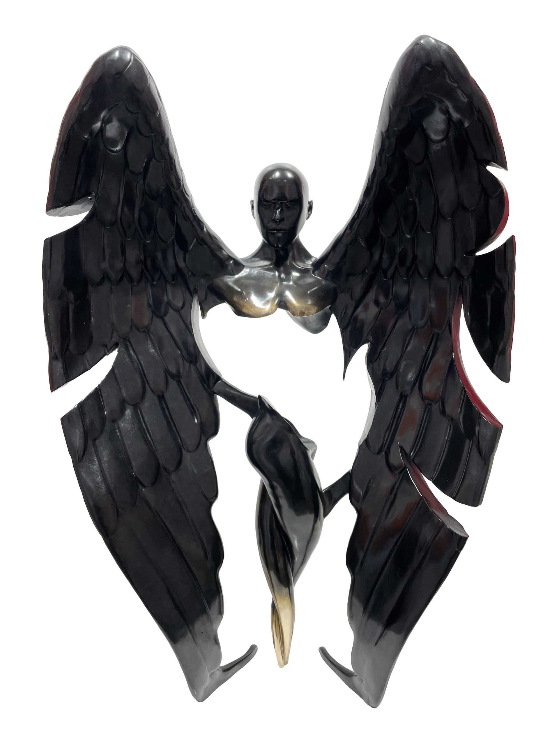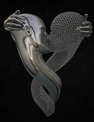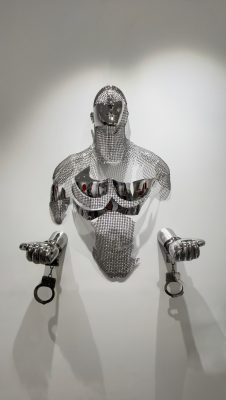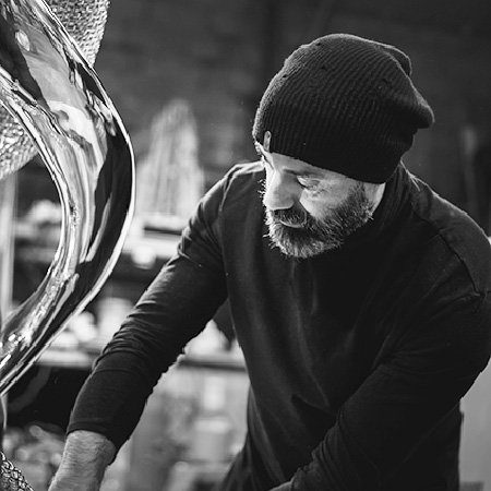 Franck Kuman is a French artist who initiated himself as an autodidact in Design as well as in sculpture. An inspiration without borders, driven by a passion for immaculate lines, has been at the service of his creations for nearly 26 years. Kuman’s achievements are further characterized by the sensual and modern use of mirror polished or hammered stainless steel, iron mesh and bronze. Although made of heavy materials, the characters represented by the artist stand out for their lightness. Aerial, they seem to float. These androgynous figures play with the spatiality they invest. Sometimes linked, often fragmented, these delicate characters are presented to us by the languor of their gestures. Witnesses to a real sensitivity, Kuman’s sculptures also represent a much more personal story … His art is revealed through the painful trials of his life. He expresses all his contained suffering, his hopes, his strength, and his determination. Catharsis of modern times, he thus draws a world where art is the captain of its destiny and in which his soul is master.