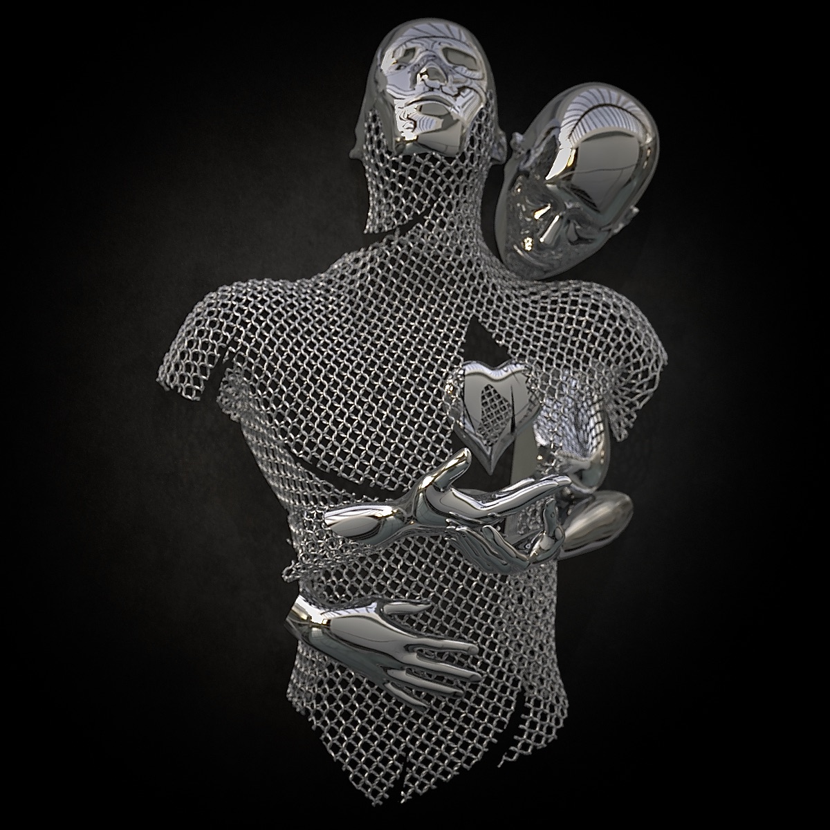 Kuman’s anthropomorphic production is characterized by the abstract universe in which powerful and sensitive characters flourish. Finesse and robustness thus manage to coexist with a balance that is as confusing as it is striking. The straight and futuristic forms’s aesthetic used by Kuman is a reminiscent of those used within the post-humanist movement. The body is stripped of the characteristics that singles out and individualizes a targeted entity. The characters are analogous and androgynous, they embody the Human in its essence and its universality. The atmosphere seems fictional. In a chimerical way, the body is disembodied. The hollows and the effects of transparency reveal the depth and intimacy of the characters. These effects are embodied in a mischievous game of veils and revelations. Through this universe, the artist allows his characters to adopt superhuman postures and physical abilities.