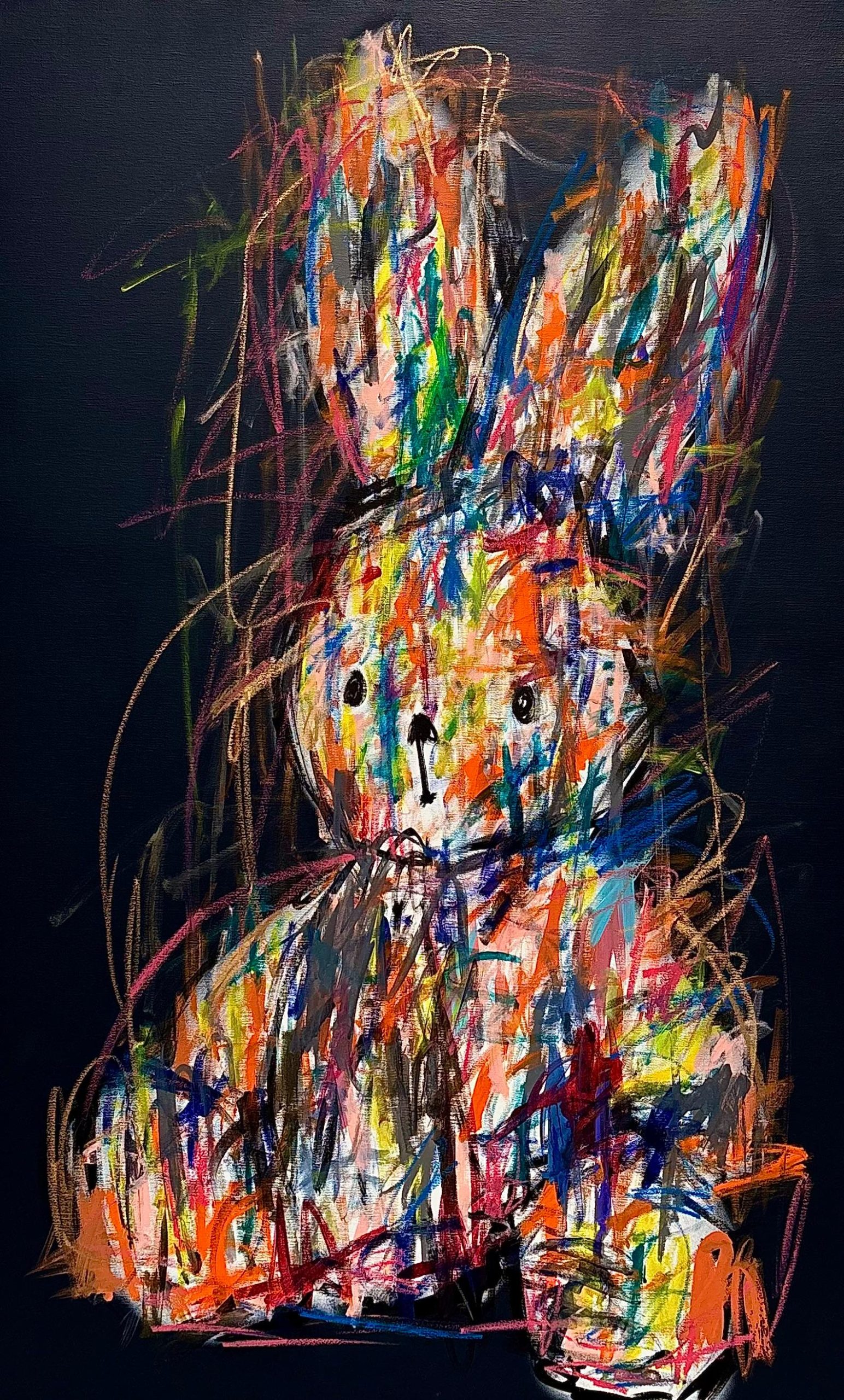For KiKo, art should remain a child’s drawing; in the realization until it is comprehension. The Comforting Bear is anchored in this spirit. Toys carry our imaginary escapes, our dreams, our doubts and our innermost secrets. The spontaneity of the gesture manifests the creative urgency, the expression of a mysterious world. The projected painting echoes Urban movement with Pop-Street Art roots. The use of stencils for Kiko is prohibited as each piece is unique and creates a unique emotion.